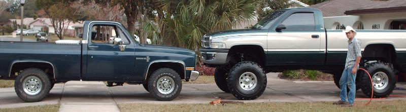 12" lift...custom steering w/ dual stabalizers and extreme drop pitman arm...stock sucks, so i rebuilt all my arms using 1 1/4" tube and heims joints.