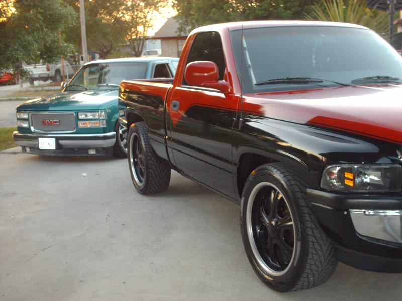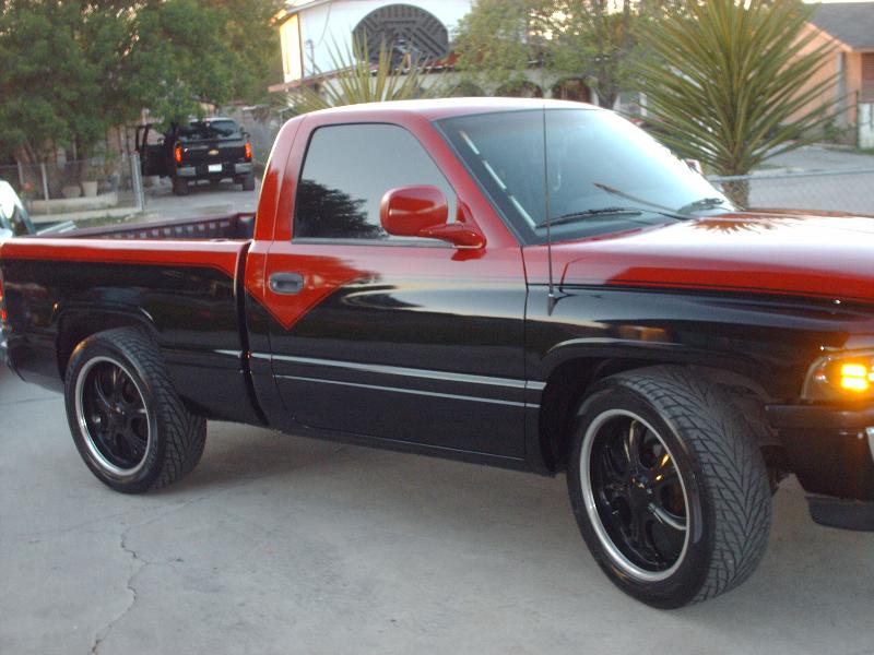 Two tone paint red and black, chrome vertical grille, black headlamps with h.i.d's, smoked tail lights