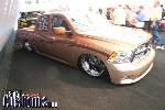 Ekstensive Metal Works, custom lower control arm. Factory upper. 2 link with a wishbone. Viair 480 compressors, 7 gallon tank, 4 slam specialties re8 bags, 4 G.C. 450 valves, copper line