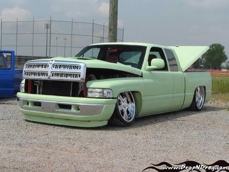 Primmed with HOC, polished flame grill, shaved doors,antenna,stake holes , tailgate, 3rd break light,and rain channels. "Can Do Customs" roll pan, tail light fillers and 2" frenched tribal tail lights. Fiberglass Ram Air hood