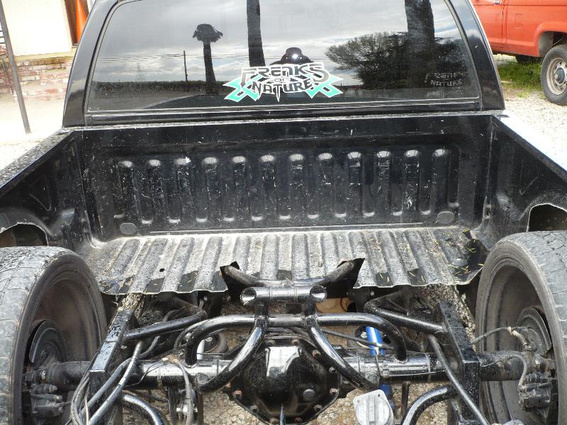 front-custom a-arms,flipped and upgraded(chevy)ball joints.flipped and lowered steering,raised upper a-arm 2".REAR-custom triangulated 4-link.fuel cell,two viair 380c and two three gallon tanks.conitech bags,gc valves