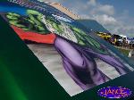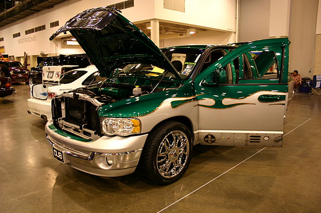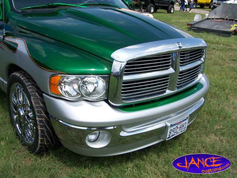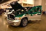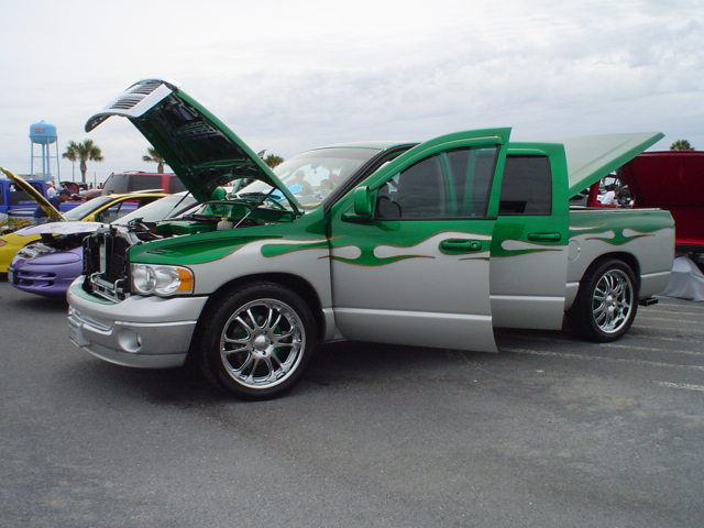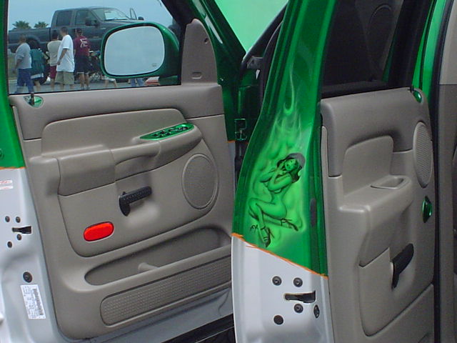 Two-tone Kandy Green over Silver.Hulk mural on bed cover.Machinery all around bottom.Under hood parts Kandy.Tailgate shaved.Hood scoop.l.e.d.'s.Train horn.