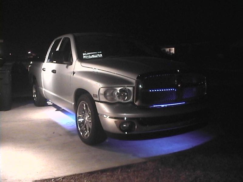 shaved emblems, side exit exhaust, blue neons, blue strobes in grill, blue leds in engine compartment