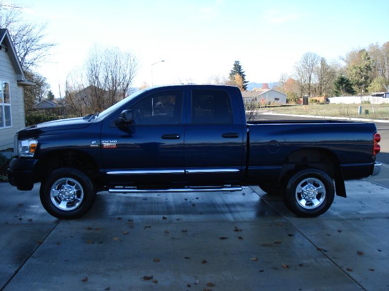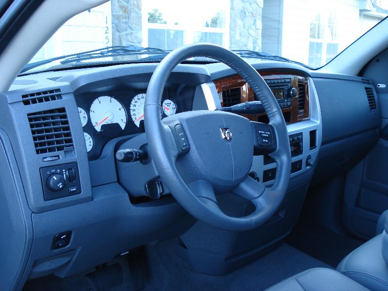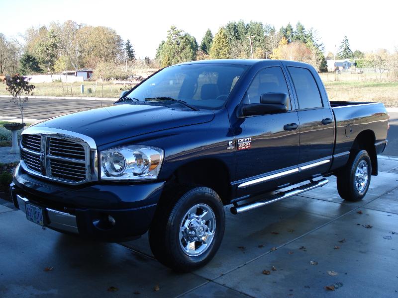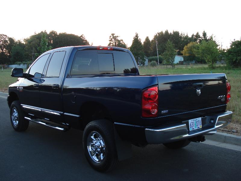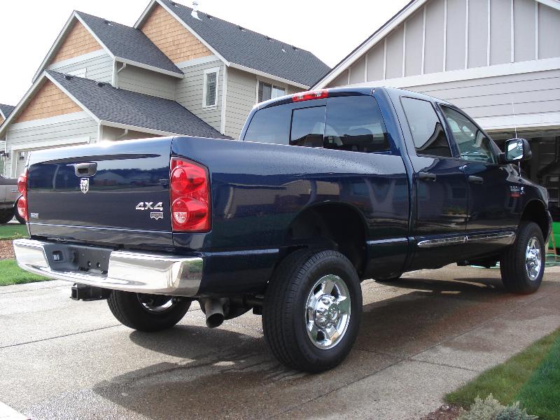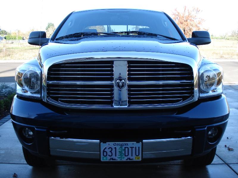 Laramie package / Patriot Blue Pearl paint / Chrome grille with chrome inserts / Power sunroof, Power rear sliding window / Chrome bodyside trim / 20% tinted windows