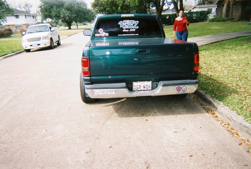 Custom green paint. Bed cover. painted bumpers, shaved emblems