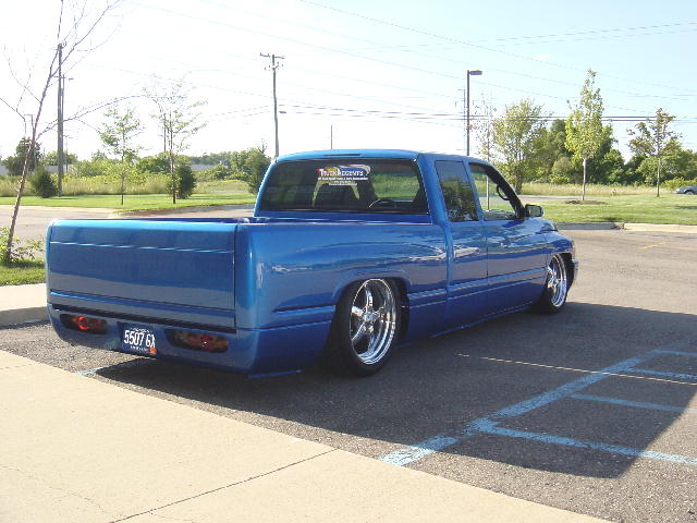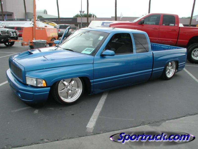 ram-air hood, billet grill distintive trucks front bumper , fully shaved , atenna , all handles , gas filler , bed floor rasied 12 inches , molded in roll pan with supra tails as clean and smooth as a silk dress