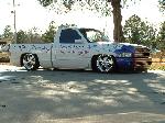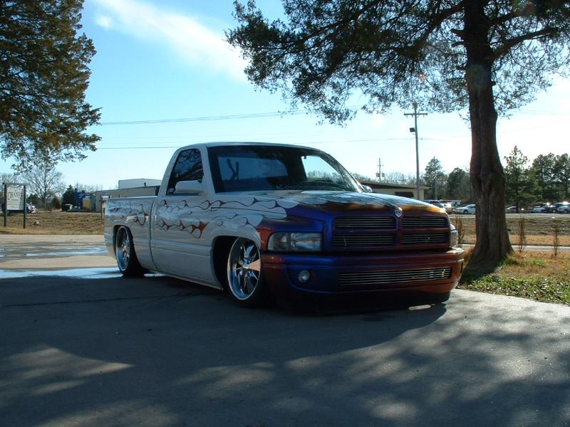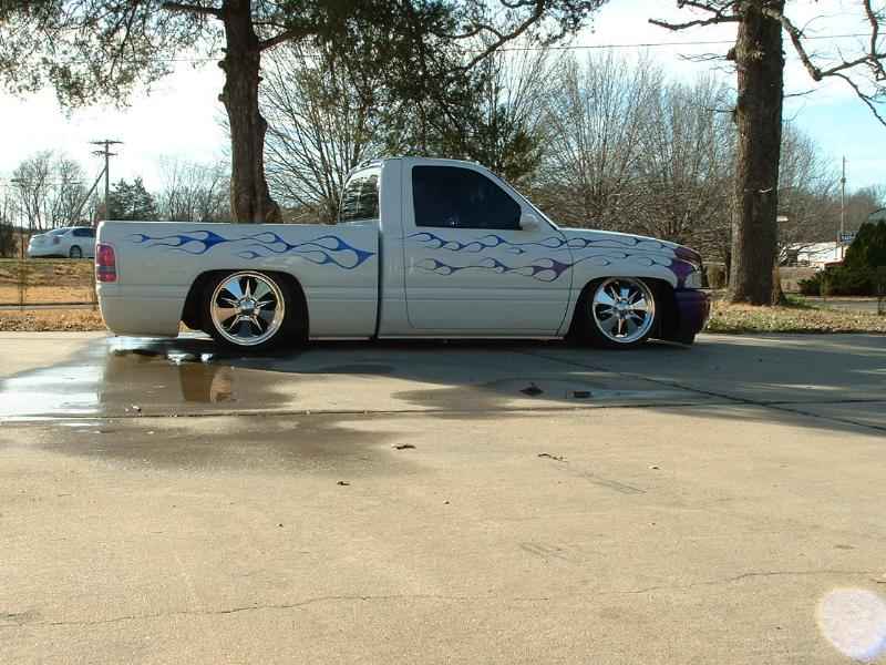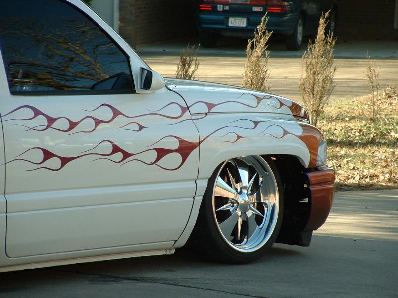 Haraquin Flames,White base with blue pearl,Shaved:handles,tailgate handle and bodyline, antenae, bed stakes, gas lid, roll pan; phantom bumber with fog lights,rhino liner.