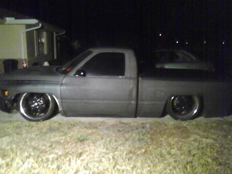 RE-7 on front and RE-8 on rear. bag on bars 4-link. 2 viair 480s, 8 gallon tank all hidden under bed between frame rails