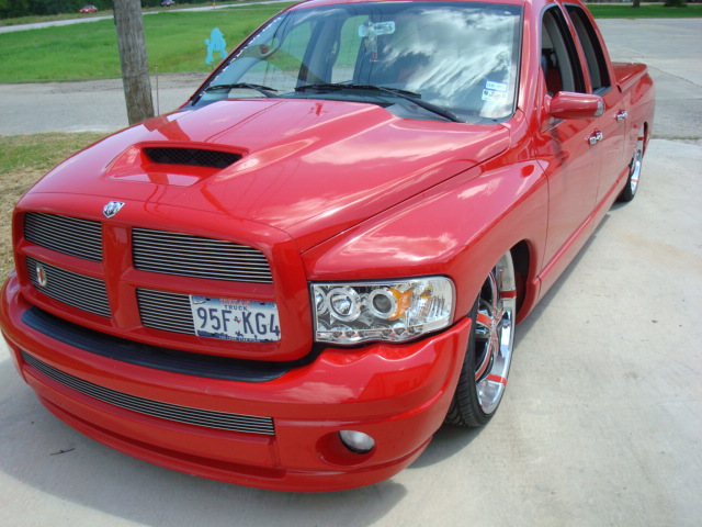 srt 10 hood, billet grille, billet bumper grille, billet antenna, billet custom tribal flame door handles, street scene dual turn signal mirrors, roll pan, shaved tailgate handle, bed cover, etc.