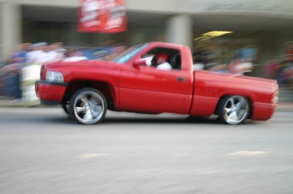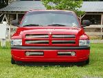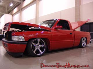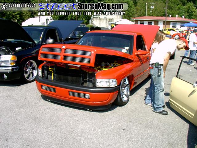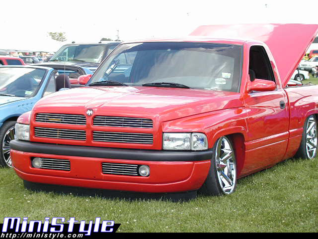 Flame red paint, patriot bed cover, euros, billet grill, fiberglass rollpan