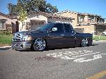 Bagged on Slam 72s. Two 7 gallon tanks. Two Air Zenith compressors and Nitrogen. JDM control arms and 2" drop spindles up front with batteries relocated behind bumper. 8" notch in back with 4 link.