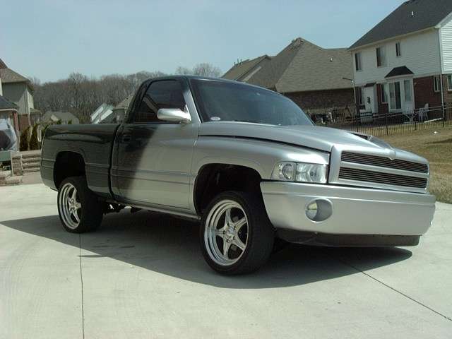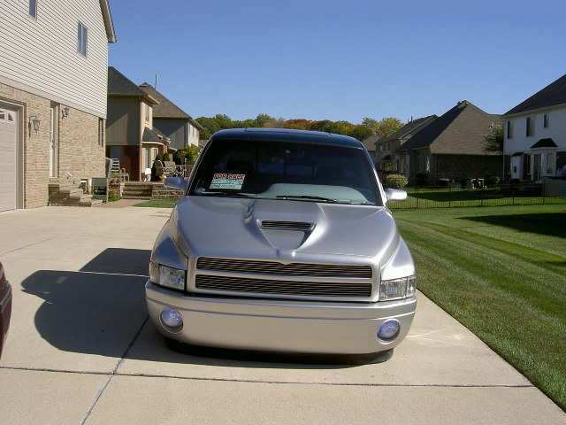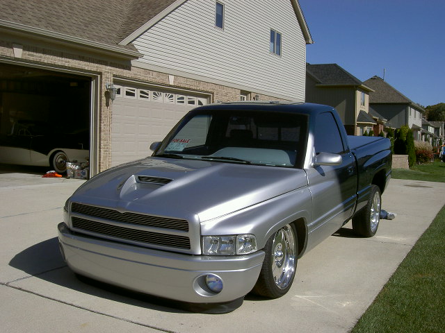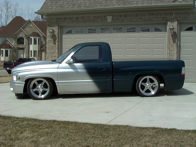Silver Pearl Metallic/ Emerald Green Metallic Paint, Painted door handles, Shaved Tailgate, Ram Sport Headlights, Crystal Clear corners,
