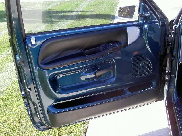 Mustang Cobra black leather bucket seats, smoothed and painted dash, EL gauges, Black headliner, Black carpet, custom subwoofer boxes/amp rack