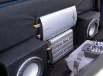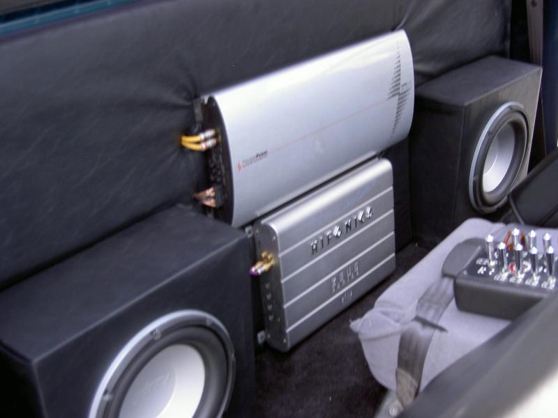 PPI pc1800.2 & Hifonics Zeus 600 amps, MMats Pro 1" tweeters and Crossovers, Kicker Free-air Subwoofer 6.5" mids, 2-10" Infinity Kappa Perfects, Kenwood Excelon 879 head, 10 disc cd/mp3 changer, Lightning 1 farad capacitor (need 15 farad digital)