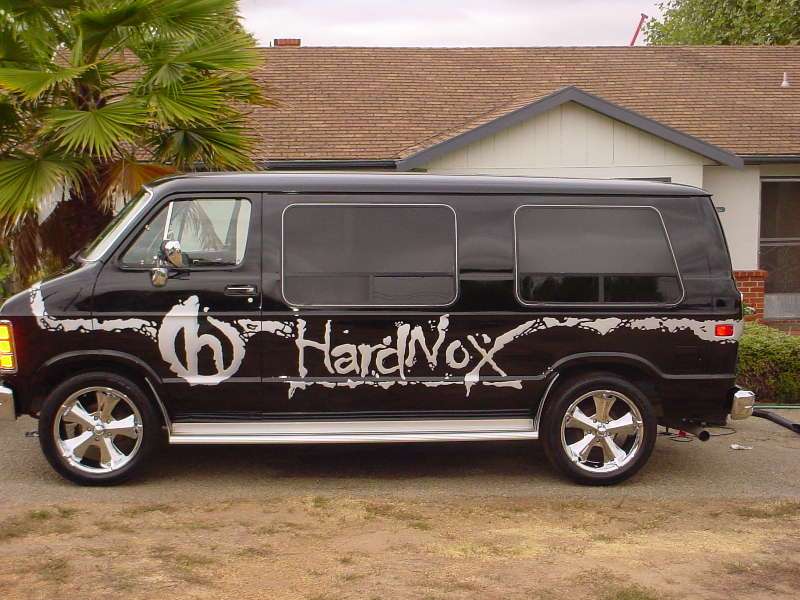 House of Kolor Paint custom airbrushing of the HARDNOX logo, with a black base on the van -- chrome here and there