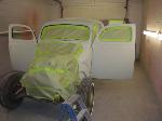 16 inch bias ply tire wit red wheels and white walls