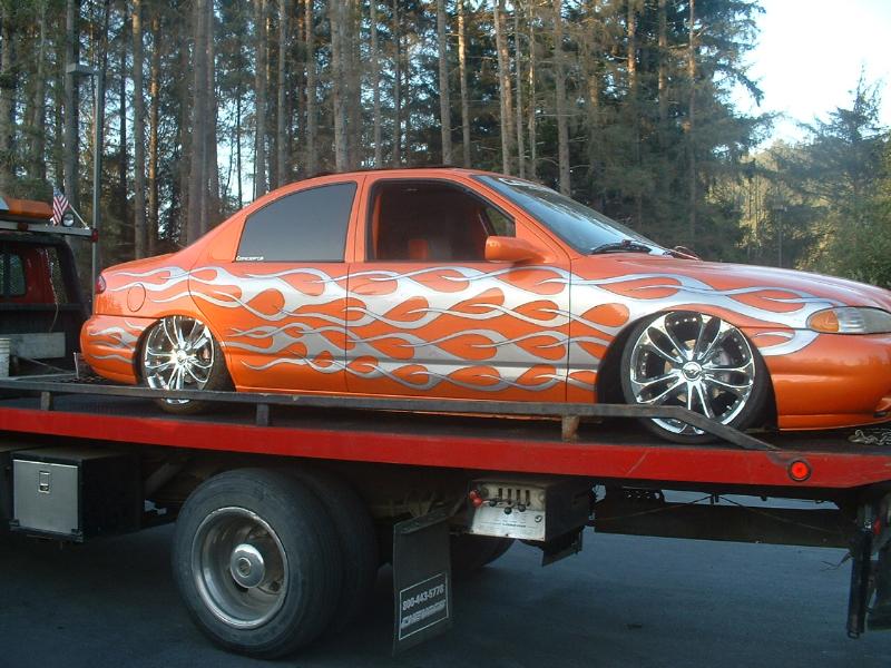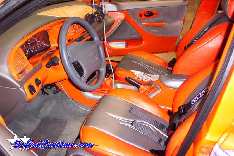 orange and silver leather seats, dyed dashboard