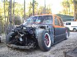lay it flat on 20s stock arms and stock spindles, rear clip, bodydrop, v8, suicide doors, full interior, respray