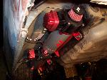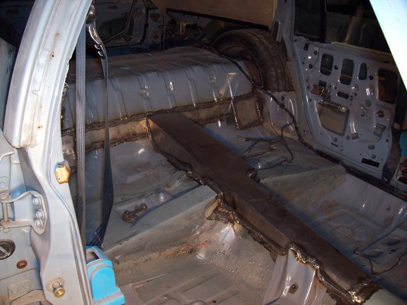 custom built control arms, 3 link suspension to keep the back seat and custom round notch. new tubs in the back also.