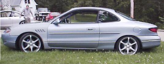 SHAVE EVERYTHING, CUSTOM HEADLIGHTS WITH CORNERS REMOVED FRONT BUMPER MOLDED IN, SIDE SKIRTS AND REAR BUMPER MOLDED IN AND FIBERGLASS SUBWOOFER BOX HOUSING 3 12" AUDIOBAHN FLAME Q SUBS