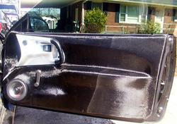 trunk fiberglassed,middle console glassed,rear speaker deck glassed and carbonfibered,door panels glassed and carbonfibered,certain pieces painted black or gunmetal