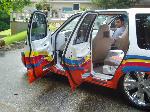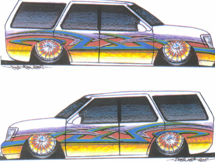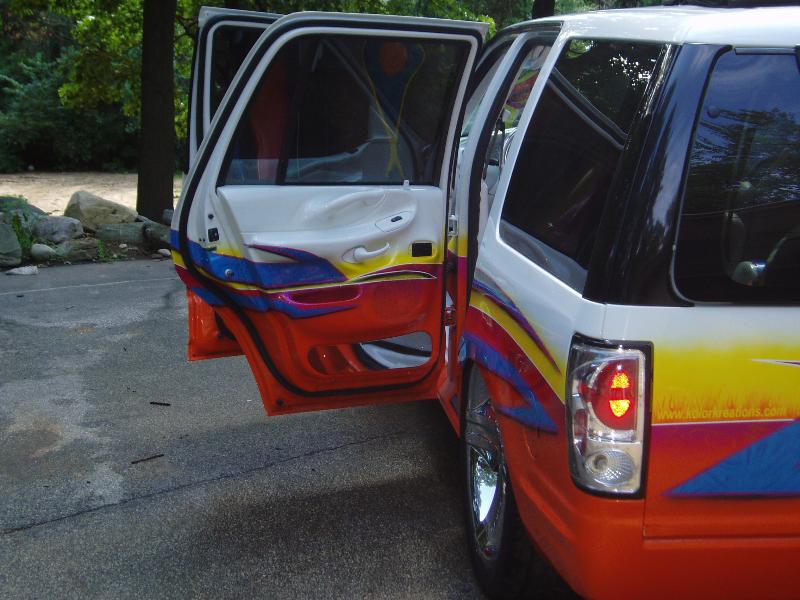 **SOLD** Panasonic 7 inch wide screen, with Dvd, and a Dolby Digital 5.1 Surround Processor. 7 inch Savv screens in the headrest. Infinity Kappa 5 1/4" center channel, 6 1/2" Infinity Perfect Components in custom fiberglass kick panels. JL Audio 5x7 XR-7 Componets in both sets of doors, 4 Infinity Perfect 12s, 2 JL 500x1, Crossfire 100x2, and a Eclispe 75x4 amp running door speakers, PLaystation 2, 2 SVR Batteries. Compustar Alarm, w/ romote start and paging unit.