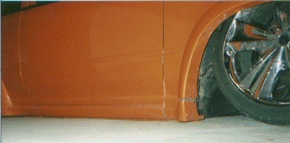 Shaved doorhandles, shaved antenna, tinted windows, two tone silver and orange with gold flake in the orange.
