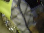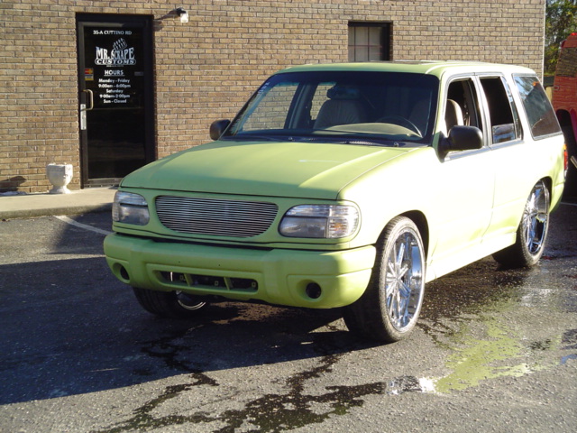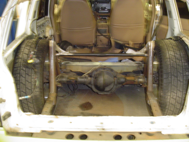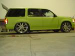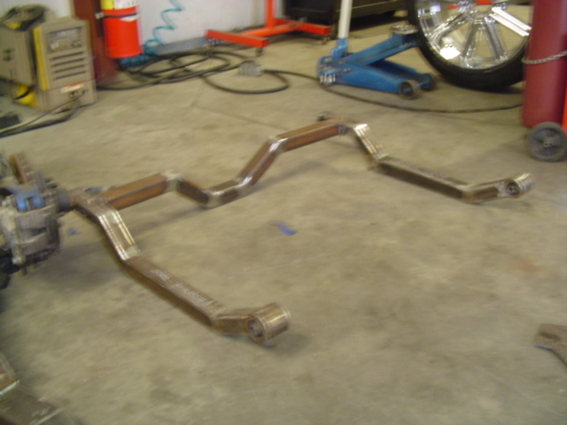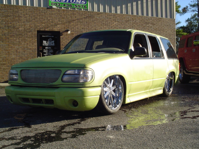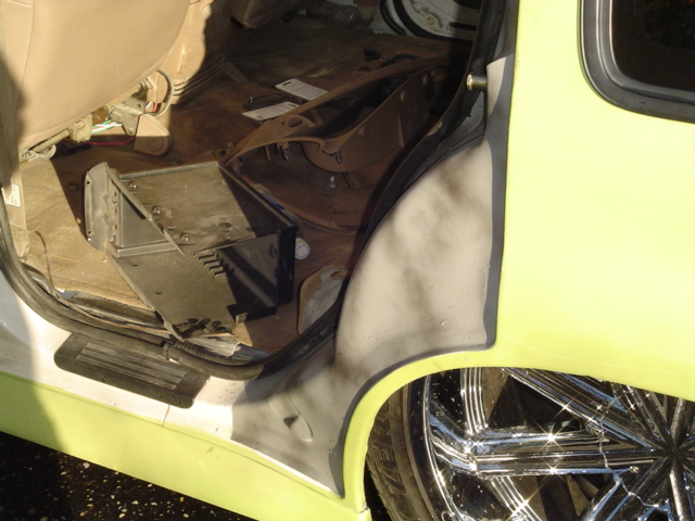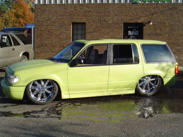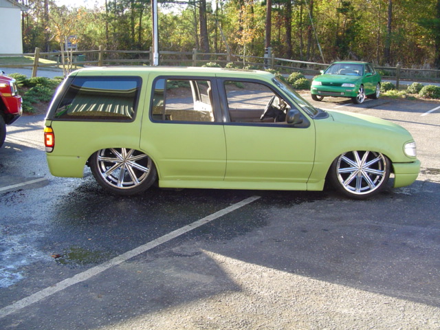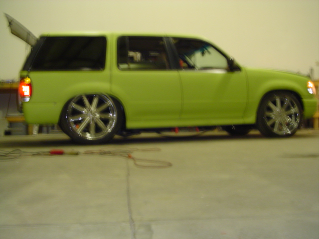 Bagged on 22's in front and 24's in rear. Lays front crossmember. Tubbed doors, relocated bear claw latches. Custom 2-link, custom upper control-arm mounts and flipped lower ball joints. engine driven compressor