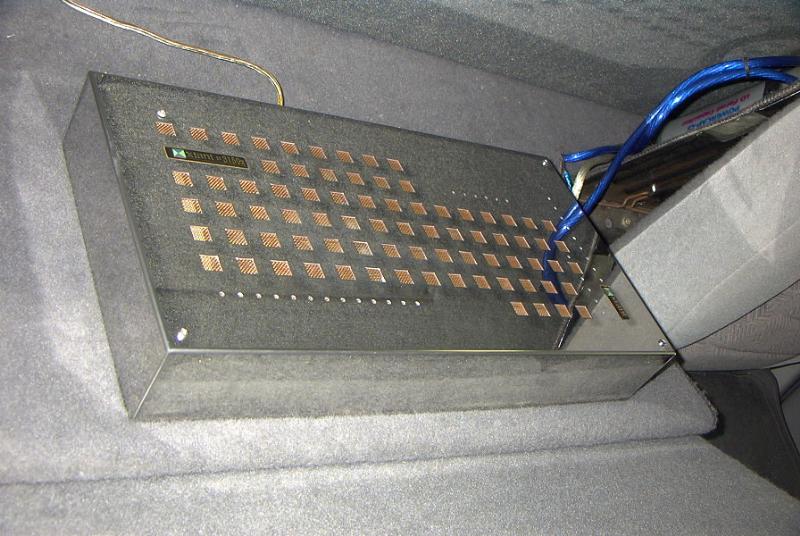 Pioneer DEH 9400 head unit, Eclipse Point Source Highs and Mids, Xtant 3150x, 3- 12" Kove XK Subs, Custom Sub Enclosure, Dynomat all through truck (4 Layers).