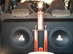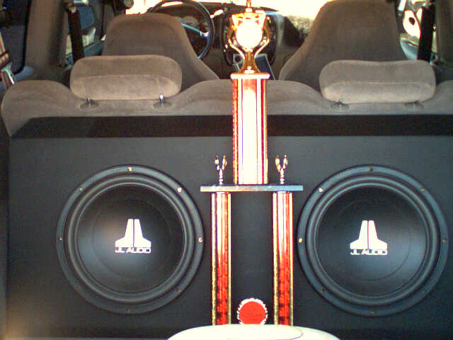 (Paisonic Muti-Media 7-inch wide TV/CD/DVD In-dash, Kenwood 4-way 6x9s up front, Audiobahn 5X7s 2-way Mid-Bass in rear, 2 12" JL Audio W3V2Ds ( 1 ohm baby!), 2 MTX MONO Class D Amps, 6-disc CD Changer, Cadence 7-Volt Line driver & 3-way X-over, & Pheonix Gold Titanium Cap.) not included with truck if sold!!! Stock CD deck is.
