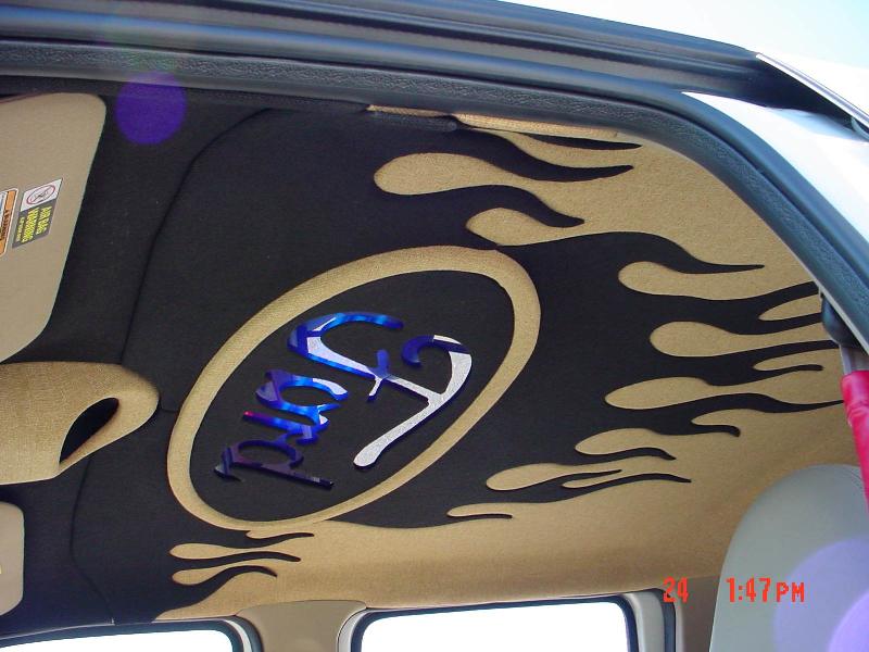 custom seats w/ostrich skin flames, crazy headliner, gauges, 3 tvs, playstation, neons, billet knobs, white face gauges
