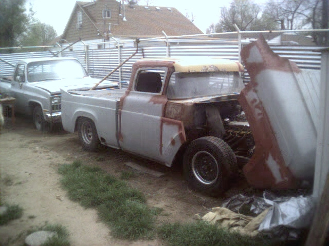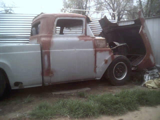 Top is chopped 3", suicide doors, Full tilt front end, tailgate is all welded shut,frnt & rear rollpans, custom made inner fenedr wells in front,power lock on hood from a cadillac's trunk, hand made cowl, fuel tank relocated to the bed.