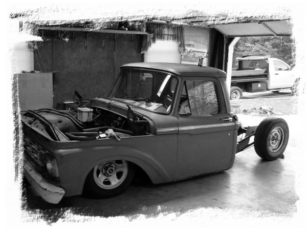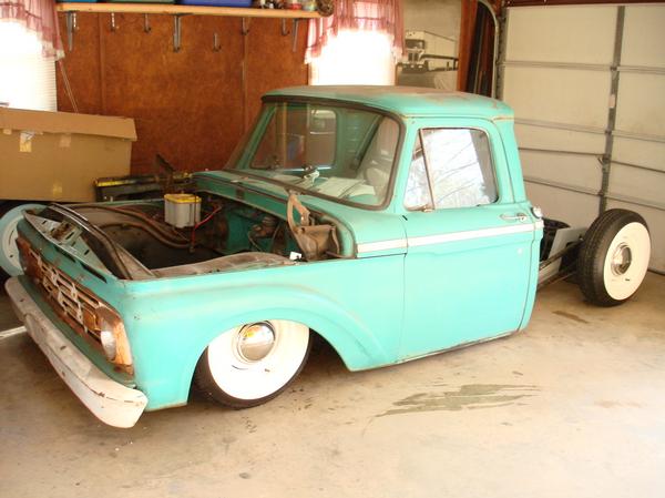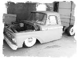 Full Air ride.Full boxed frame from cab back, Fat man Fab Mustang 2 front clip, tubular a arms, drop spindles, Suicide doors parallel 4-link