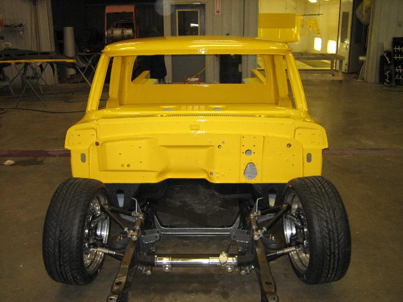 Ford Speed Yellow with most of the stock ranger trim powdercoated in White-silver. Shaved bumpers, hood, fuel neck, and radio antena