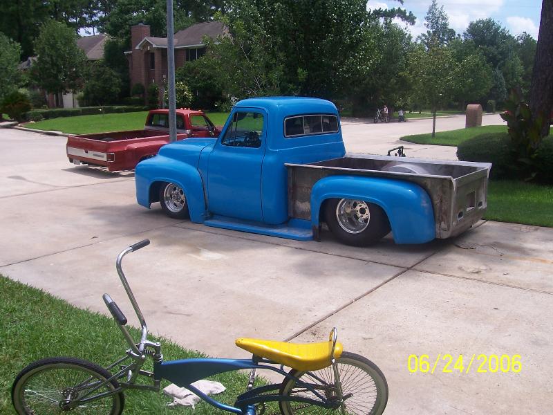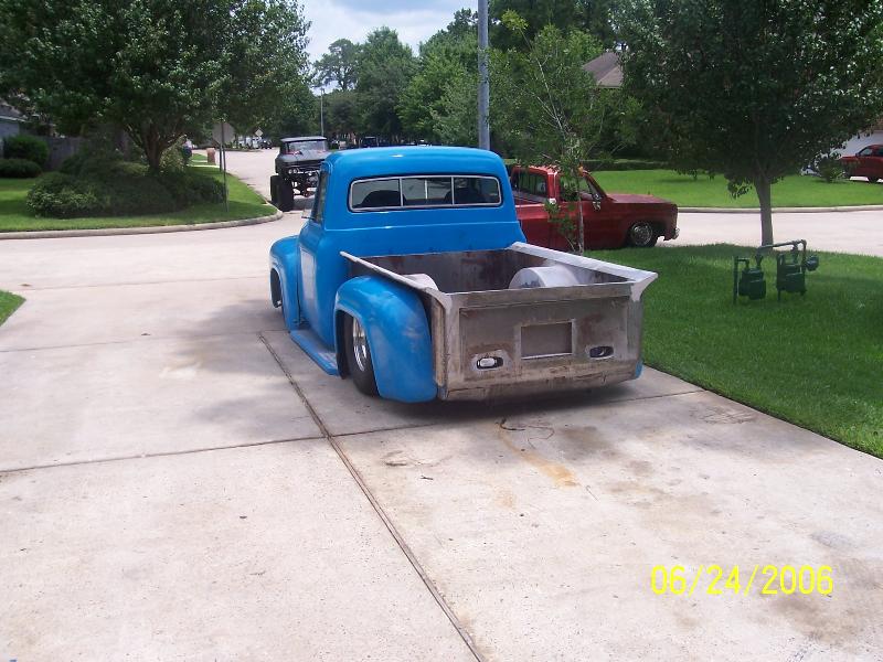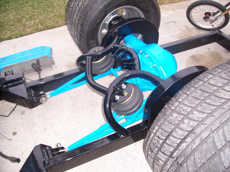 camaro front clip with bags in front and rear,ford 9 inch with disk brakes and ladder bars and lays running boards,will post new pictures when finished