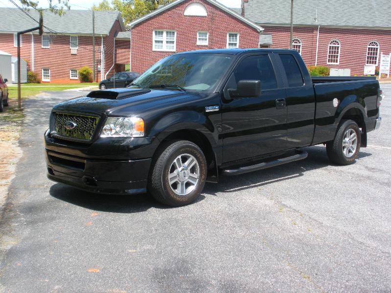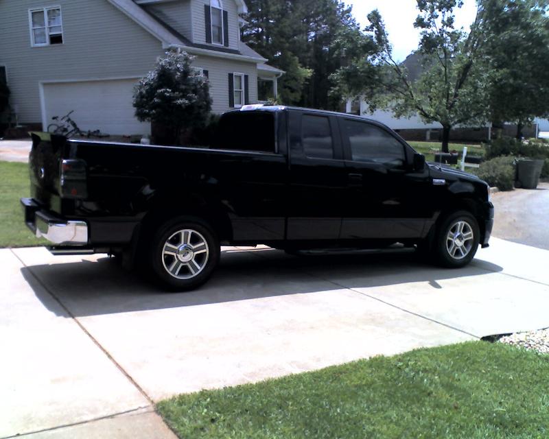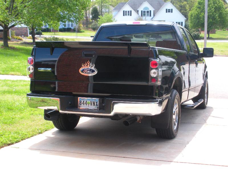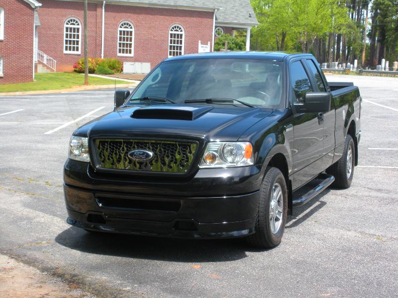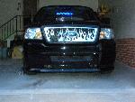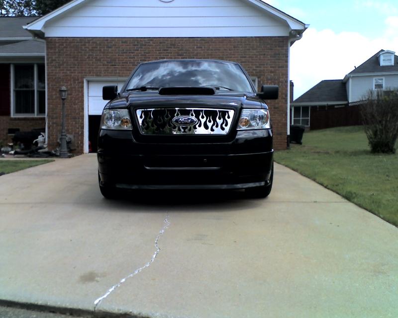 Roush chin spoiler, Roush hood scoop, Roush Tailgate spoiler, Black Nerf Bars, Husky molded mud flaps, 9" stubby antenna with flames etched in, Stainless flamed grill and stainless flames on tailgate. Stainless fuel door. Under truck neons (Blue)Black Altezza Tail lights. Full Tinted windows. Blue H.I.D head lamps, Bosch pivotless wiper blades