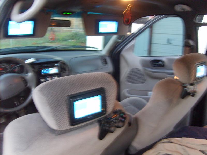 CUSTOM PAINTED INTERIOR PIECES, PS2, 5.6" HEADREST, 7" VISOR, AND 3" JVC HEAD UNIT