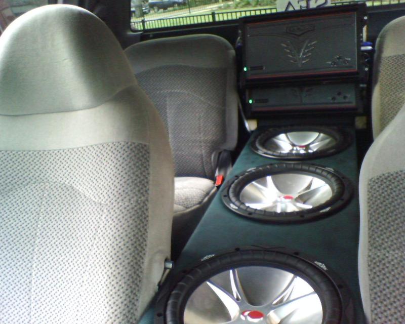 7 inch boss indash screen with a boss dvd player, Clarion DXz655mp receiver with a clarion 625 cd changer with 4 Powerbass tweeters and 4 Pioneer 3-way door speackers recently added 4 12" Kicker CompVRs and 2 Kicker ZX1000.1 Amps