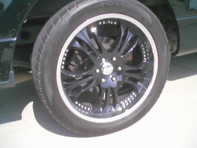 22X9.5 Sporza Estradas Powdercoated black with chrome lips. Low pro tires forty series