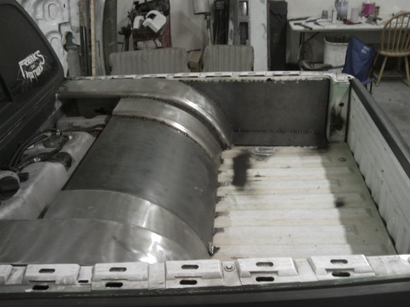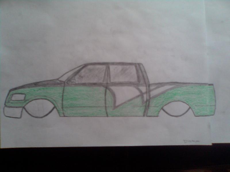 body dropped to the rocker, lightning headlamps and corner markers, shaved tailgate handle and gas filler