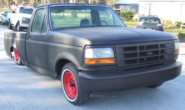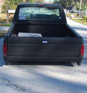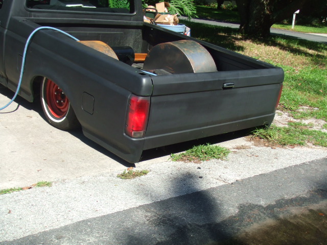 Flat black primer , new chrome door handles peep mirrors tubs for bed 5 inch cowl hood shaved emblems an old mirror holes custom rollpan from cando