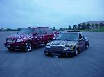 Flat Black singal stage paint with House of Color Metal Flake Flames by pat Maxwell of Maxwell Designs Navigator front clip, Trenz billet grille, Sir Michaels roll pan, Snug top bed cover, 40X40 Rag Top, Street Scene mirrors