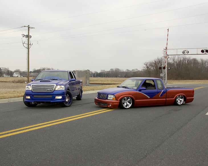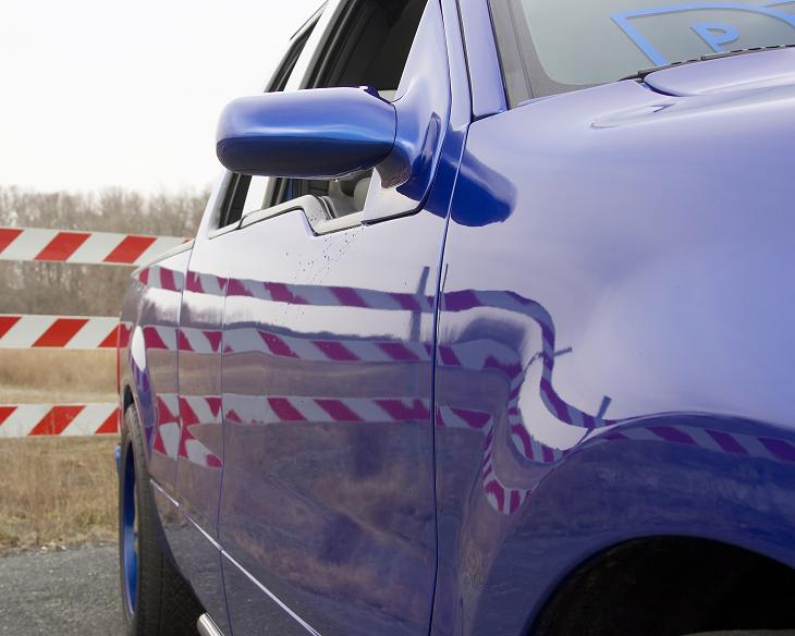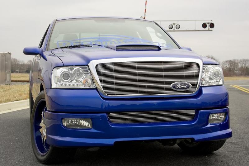 painted daytona blue, shaved, ss cowl,mirrors,front bumper, trenz billet grilles, westin sport tubes, projector headlights, roush hoodscoop