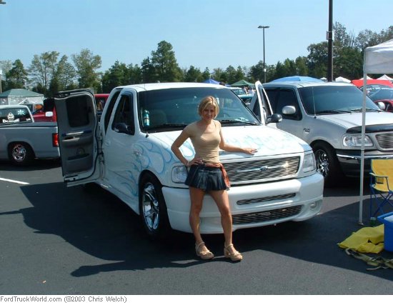 Custom Paint- Ford Oxford White w/ Silver Pearl then Blue Pearl Flames, Shaved Tailgate, Acetoned Emblems, Etc...