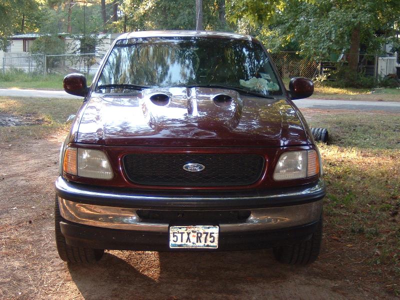 cobra style cowl hood... don't mind the truck not being washed before the pictures were taken... T-Rex billet grill and ford lighting style heda lights and corners