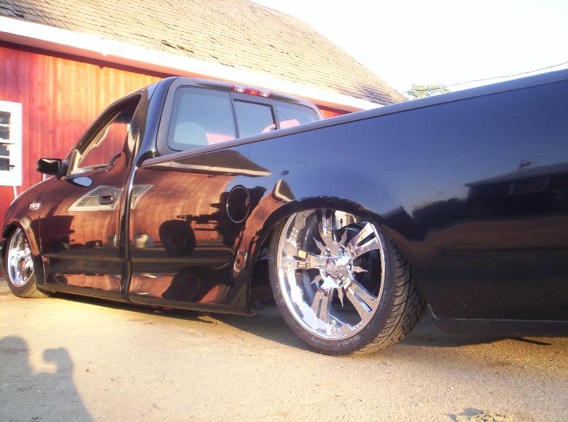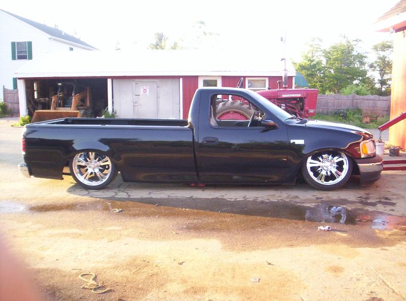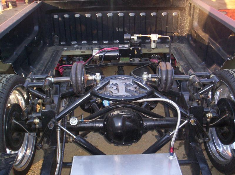 Totally custom air suspension. Rear cantilever setup on bags and shocks. DJM bottom arms in front. Oasis compressor. Half inch line. Fuel cell.