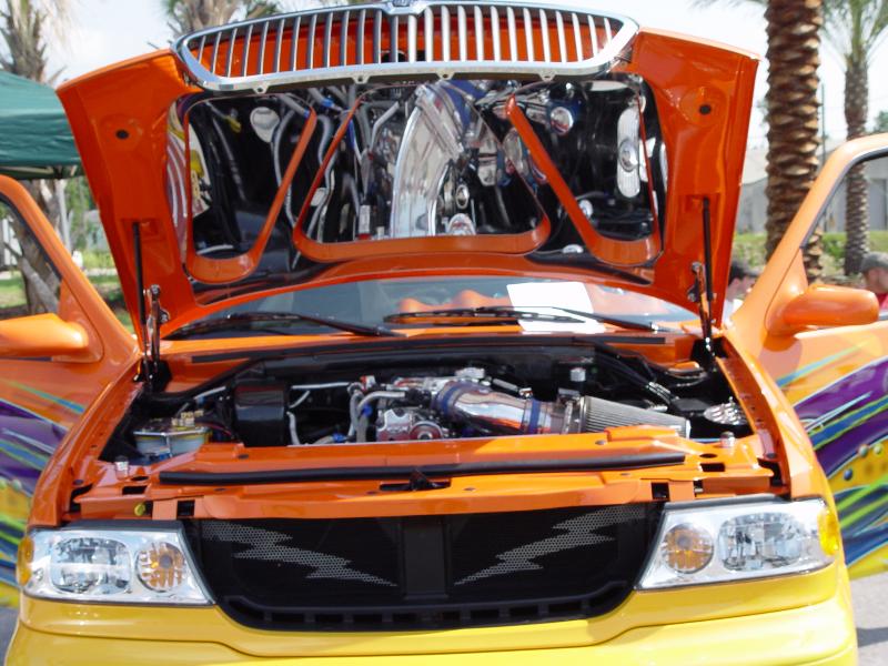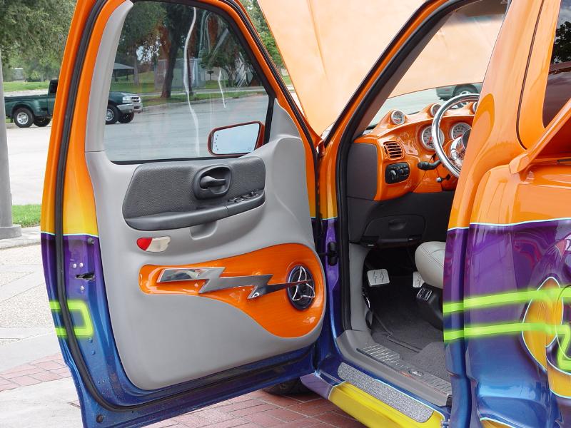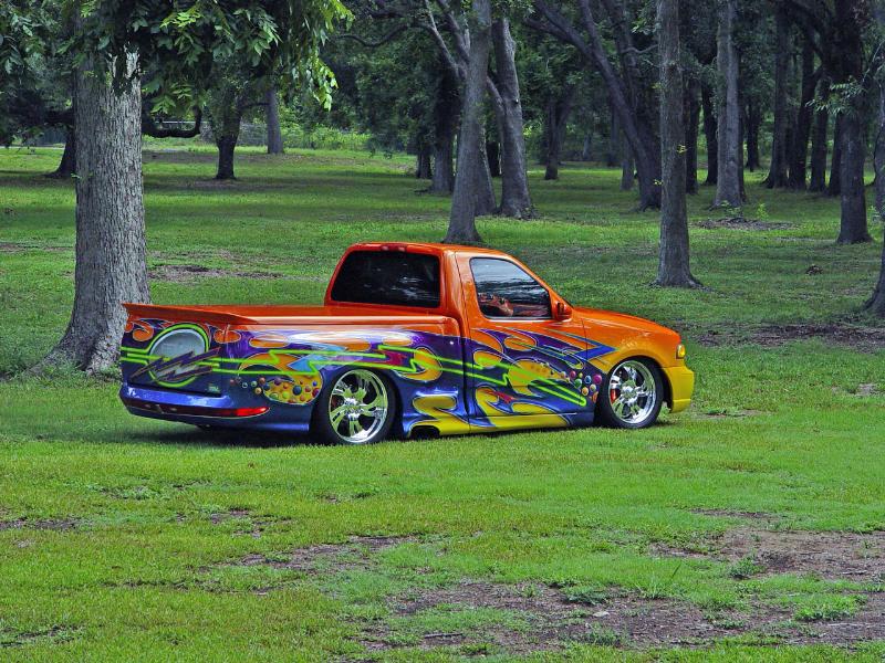 2002 Lincoln navigator front end,shaved door handles,rounded top of doors,smooth side bed steps,smooth bed rails,ground effects kit molded in,rear tail gate smoothed out,rear tail gate swings out,1995 Lincoln mark8 tail light molded in,and custom paint by Kal