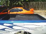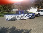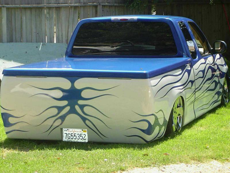 shaved doors gas door bed rails taligate and a snug top bed cover tailgate molded shut rollpan taillights shaved 15 inch leds antanne sheet metal bed HOK true blue pearl and pear white i would like to thank the guys at kaotic kustoms in reedley cali