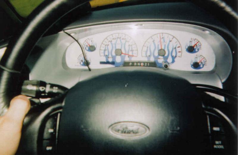 Various panted pieces, billet rearview mirror, and NuImage Flame gauges
