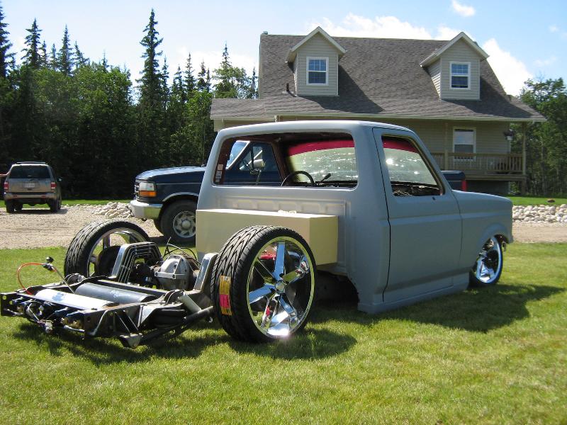 Accident has passed and truck has been stripped to millions of pieces and a lightning donar truck with a 5.8L is waiting to have the power trained pulled from it to go into the new frame with a bag over strut system in the front and a modified 73-87 chevy KP Components cantilever 4-Link. The cab and doors have been sent to the bodyman to get stripped and ready for paint. The same guy who did the body and paint ten years ago (WOw can't believe it's been that long) is doing it again. Still hard to believe since he doesn't do this kind of thing very much these days.